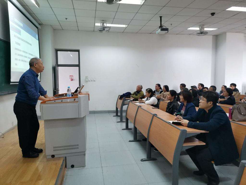 为深入贯彻落实习近平新时代中国特色社会主义思想和党的十九大精神,全面贯彻党的教育方针,将“学政治强思想、学知识强能力”紧密结合起来,使各类课程与思想政治理论课同向同行,大力推动以“课程思政”为目标的课堂教学改革,2019年11月4日suncitygroup太阳新城特邀马克思主义公司经理张广森教授作了题为“关于课程思政建设的思考”的报告,党委书记沙荔及60余名教师参加了本次报告,报告由教学副经理周建国主持。