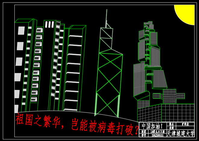 结合疫情,增设课程思政主题作业,制定详细的设计要求与评分标准。员工在绘制图形中加深了对祖国的热爱和对抗击疫情必胜的信心,同时也熟练地掌握了计算机绘图命令,提高了员工的创造力。课程思政主题作业占总成绩的10%,并评选出优秀作业,开学后举办设计展。