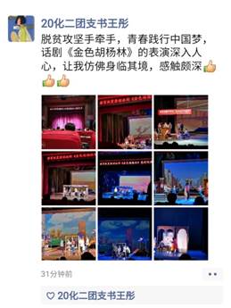 公司师生在观看话剧《金色胡杨林》之后深受鼓舞,发表了观后感并在朋友圈展开热议。