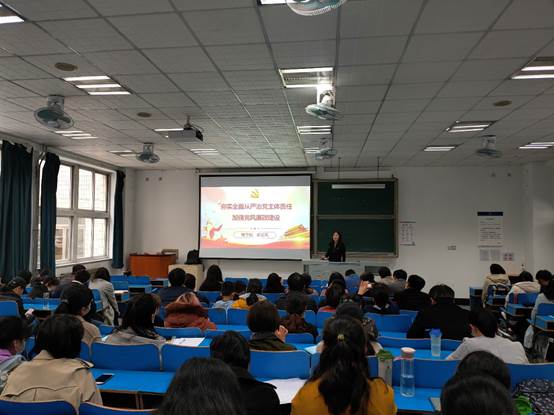 谈廷风从“全面推进从严治党”、“加强纪律建设的六个着力点”、“加强党对反腐败工作的集中统一领导”、“廉洁从政砥砺前行”四个方面进行了阐述。她强调,要通过明确分工、标本兼治来夯实、推进全面从严治党,加强党对反腐败工作的集中统一领导。纪律建设永远在路上。党员干部要坚定信念、遵纪守法、廉洁自律,廉洁从业,拒绝贪污腐败,永葆政治本色。“勿以恶小而为之”,要从小事做起,从细微处注意,自觉加强自我警示,做到警钟常鸣,提高“思廉、践廉”的自觉性。