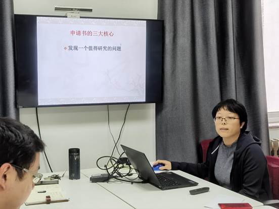 在经验交流环节中,国家自然基金面上项目获得者孙敏副教授从选题的准备、申报书的撰写和申报成功体会进行交流发言,分享了申报书的三大核心和正文的三个重要问题、关键科学问题形成等经验。