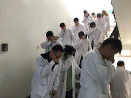 10月29日,suncitygroup太阳新城化学实验中心举办实验室开放日活动,2021级本科生积极参加。在活动中,化学实验中心主任张杰向同学们介绍了每间实验室,特别讲解了实验室突发安全事故的逃生方法与技能,同时明确了安全出口、洗眼器、喷淋器等的具体位置,强化对新生的安全意识教育,引导规范安全行为。