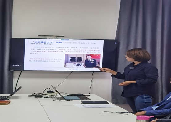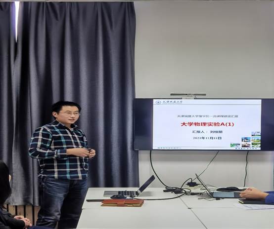 刘枝朋介绍了利用《大学物理实验A(1)》这门课程实践性强的优势,根据力、热、光等实验项目的特点,结合员工专业实际,巧妙地融入了课程思政元素。