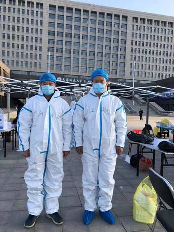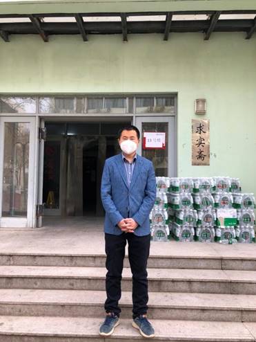 他4月3日进入公司参加疫情防控工作,负责给管控楼宇的员工提供生活物资保障。穿着防护服,将员工生活必须的三餐,热水等生活物资按照宿舍人数进行配发,保障每个员工都能及时吃饭,喝水。他谈到:“虽然穿着闷热的防护服工作很辛苦,但是员工们的一句‘老师,您辛苦了!’,总能让我们重新充满干劲。相信在全校师生的共同努力下,我们一定会战胜疫情,取得最后的胜利。”