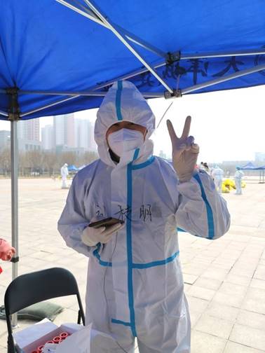 新冠疫情与城大不期而遇,疫情就是命令、防控就是责任。作为一名教师党员,在接到公司的紧急征调任务后,他匆忙收拾物品,奔赴公司,志愿参与公司疫情防控工作。根据公司安排,3月2、3日晚10点到早上6点,他在“爱劳斋”参与夜间值班工作,负责宿舍楼人员进出登记、组织隔离员工有序离开。初春的天津,乍暖还寒,他克服了寒夜和困倦,认真完成了夜间值班任务。随后,4日-6日,他在“洵美斋”进行员工物质发放和核酸检测工作。“洵美斋”是特殊管控宿舍楼,根据公司安排,老师们需身着“大白”将员工开水、一日三餐、水果等食品按宿舍发放到位,确保员工能吃饱、吃好。他与志愿服务的老师们相互配合,克服身着防护服的不便和疲倦,圆满完成了任务。从7日开始,他又身着“大白”,参与了公司的每日核酸筛查工作,主要负责“崇礼斋”员工核酸检测扫码登记。他累计完成了84管407人的登记工作。除此之外,他在“求实斋”组织员工有序打水、参与午餐晚餐和水果酸奶的发放工作,圆满完成了公司交给的任务。他谈到:“4月的城大,已是百花盛开,校园满是芬芳。困难终将过去,相信在党委的领导下,在老师、同学们的共同努力下,大家持续做好疫情防控各项工作,定能战胜疫情,早日恢复校园正常的工作、学习生活。”