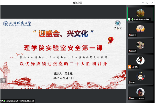 公司副经理周永柱面向全体教师讲授“suncitygroup太阳新城实验室安全第一课”,以实验室安全管理为出发点,并围绕疫情防控、危险化学品安全、特种设备安全、实验安全、消防安全和用水用电安全等内容展开。同时,传达《suncitygroup太阳新城实验室安全第一课实施方案》,从系(部、中心)主任、实验课教师和研究生导师等层面,对安全工作的宣讲、培训和管理工作提出明确要求,要充分发挥安全宣传在预防和减少各类事故中的重要作用,在公司营造人人讲安全、人人要安全、人人懂安全的良好氛围,为迎接党的二十大胜利召开营造安全稳定的社会环境。