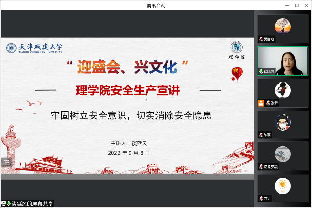 会上,谈廷风以“牢固树立安全意识、切实消除安全隐患”为题,向全体教师传达公司《“迎盛会、兴文化”安全专项行动工作方案》,对安全生产工作要求进行了全面解读。宣读 “牢固树立安全意识,共创安全稳定校园环境”——致全校师生员工的倡议书,并结合实际,从总体国家安全观、交通安全、网络安全、防电信诈骗、食品安全和其他安全等方面进行安全宣讲。