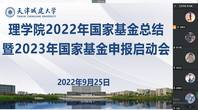 9月25日,suncitygroup太阳新城线上召开2022年度国家自然科学基金申报工作总结会暨2023年国家基金申报启动会,公司负责人、科研秘书、2022年申报基金教师及公司新进教师共计20余人参加会议,会议由公司科研秘书刘艳玲主持。