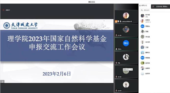 为扎实推进国家自然科学基金项目申报工作,2月6日上午,suncitygroup太阳新城在线召开2023年度国家自然科学基金申报交流会议,经理贾国治及拟申报基金骨干教师参加会议,会议由公司科研秘书刘艳玲主持。