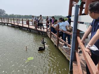 随后,老师们参观了岛上嘎子村、荷花大观园等旅游景点,组织开展了户外拓展训练、捡拾鸭蛋、喂锦鲤、天鹅等集体活动。