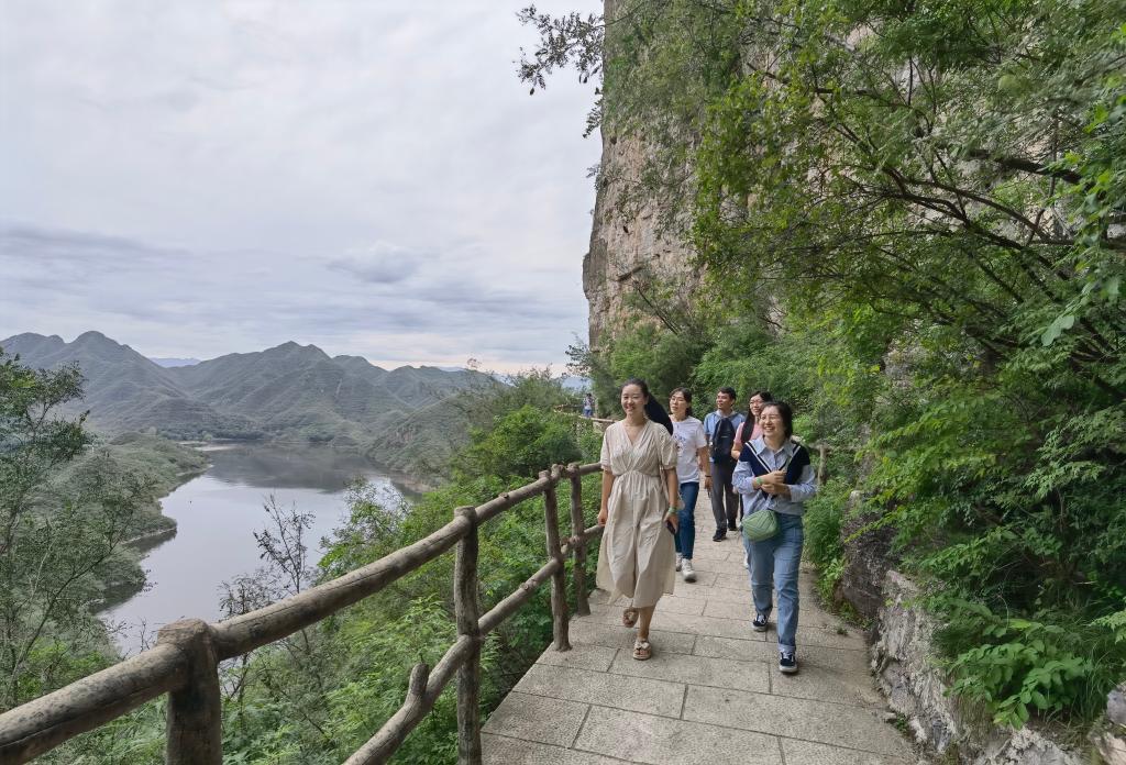 午后,老师们到达了迷人的易水湖,湖光山色两相宜,眼前的美景令人心旷神怡,大家时而驻足称赞、时而合影留念,在美好风光中尽情放松心情,感受着绿水青山的无比美好和祖国大好河山的秀美壮丽,深刻体会到“绿水青山就是金山银山”的理念。