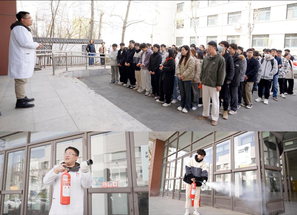 演练结束后,实验中心教师吴富奇对参演师生进行了灭火器使用培训,并组织了灭火器实操体验。