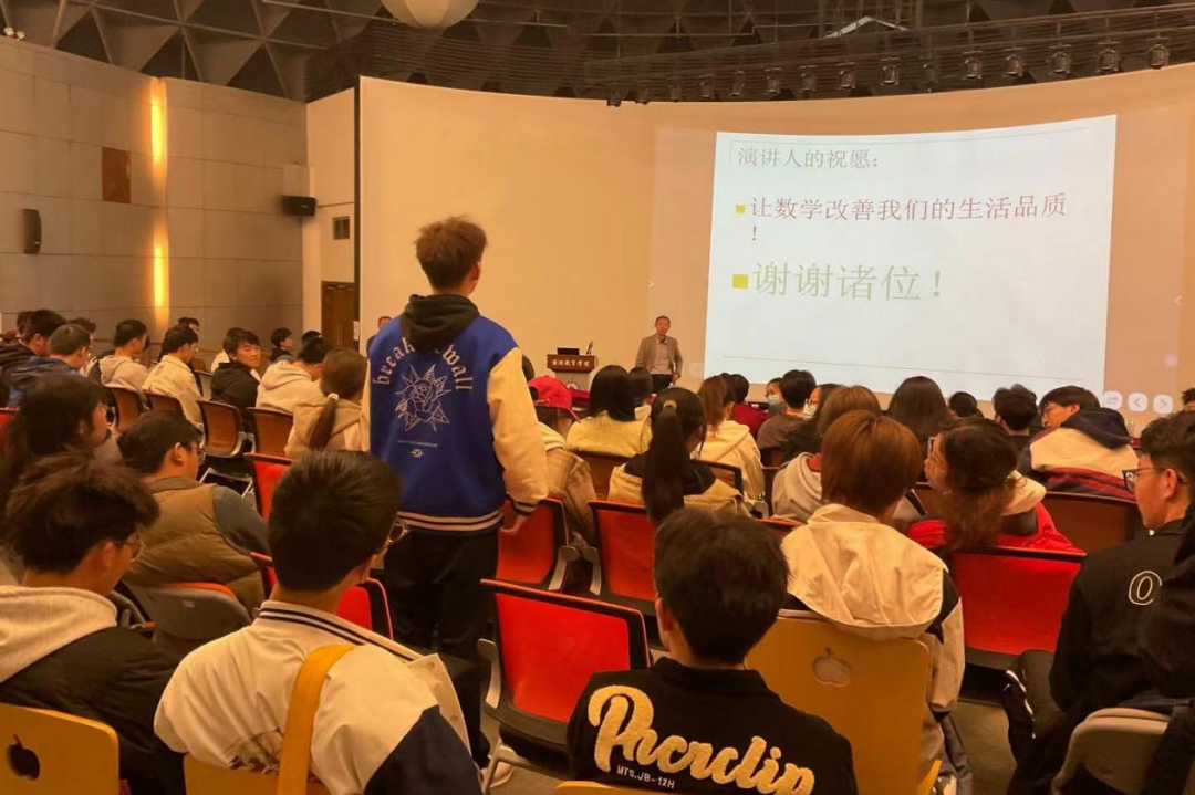 杨晓松教授在报告中,以“轻烟细雨欲遮风,清水不知西和东。游人难识九马画,船到渡口犹觉空。”的诗歌为引,向大家展示了数学修养和逻辑美,激发起听众的兴趣。通过毛发梳理不齐现象、煎饼问题、莫比乌斯带等实例,展示了数学的优美,介绍了数学若干分支在工程实践和社会生活中的诸多应用,讲述了数学中的逻辑推理能力和空间想象力。杨教授着重讲解了数学的组成以及在各个学科领域的运用,他鼓励同学们:决定你将来的,不是当前的选择对错,也不是当前的环境好坏,而是你是否能够坚持不懈的努力!