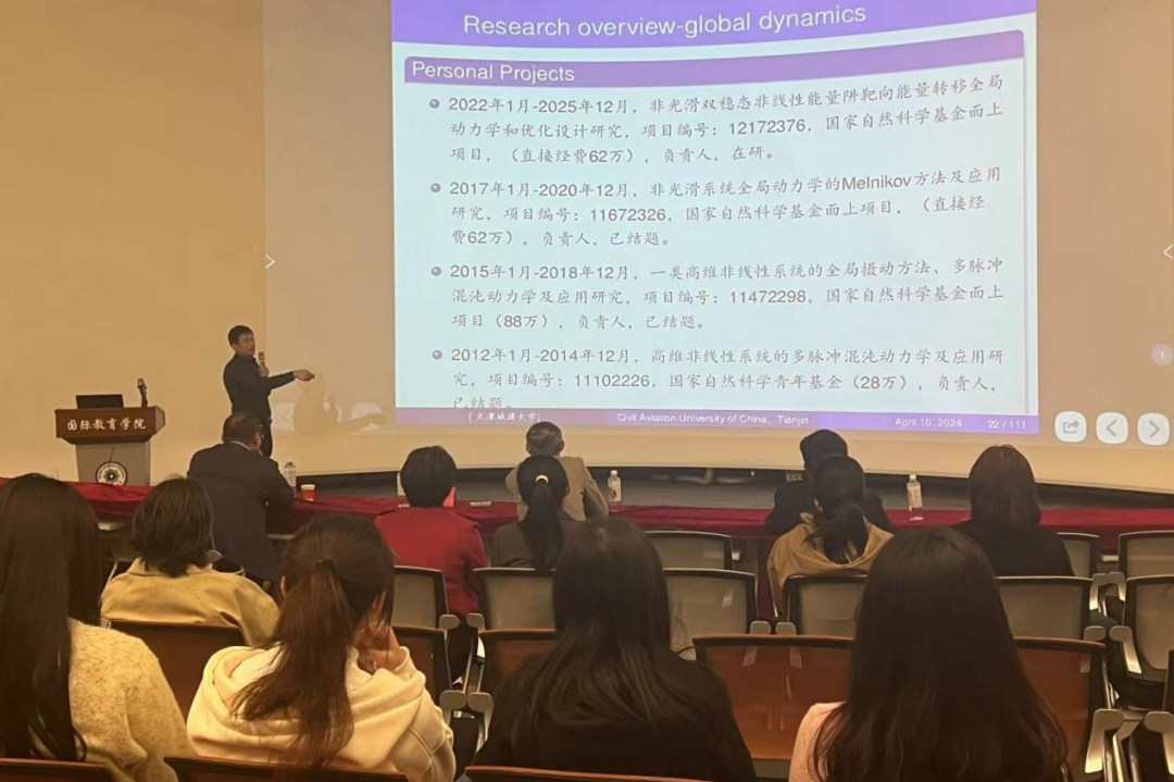 李双宝教授在报告中,与大家分享了平面非光滑系统全局动力学的Melnikov方法,详细介绍了一类非光滑系统的全局分岔、混沌和不稳定性等复杂运动产生的机理和临界参数域。展示了如何利用发展的解析方法,对非光滑力学系统的全局动力学特性进行精准调控和参数优化设计,该方法在非光滑系统全局动力学几何直观性描述方法和工程计算方面具有明显优势。报告结束后,李教授与老师们分享了自己的科研经验,以及如何平衡工作与生活之间的关系。