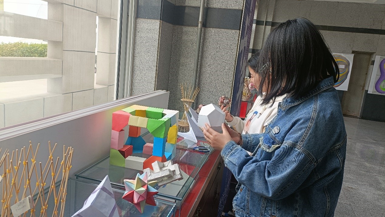 展览吸引了来自校内外的数学、物理、计算机、建筑、能动、艺术等不同专业背景的师生,并引发了强烈反响。为深化师生参与体验,展览特别设置“几何思维挑战”互动,通过猜谜挑战、魔方拼装、几何模型现场制作等趣味活动,将直纹面形态、曲率变化等抽象几何概念转化为可触可感的实体体验。