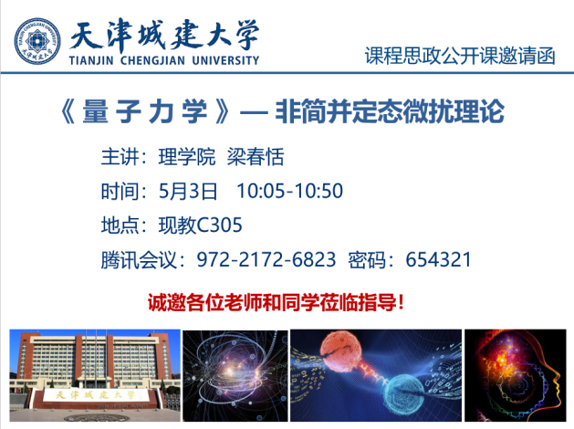 4月22日、5月3日,suncitygroup太阳新城物理系教师梁春恬结合公司“课程思政示范课”建设项目,面向2019级应用物理学专业同学开展了《量子力学》的课程思政公开课展示,suncitygroup太阳新城同行教师进行了线上观摩。