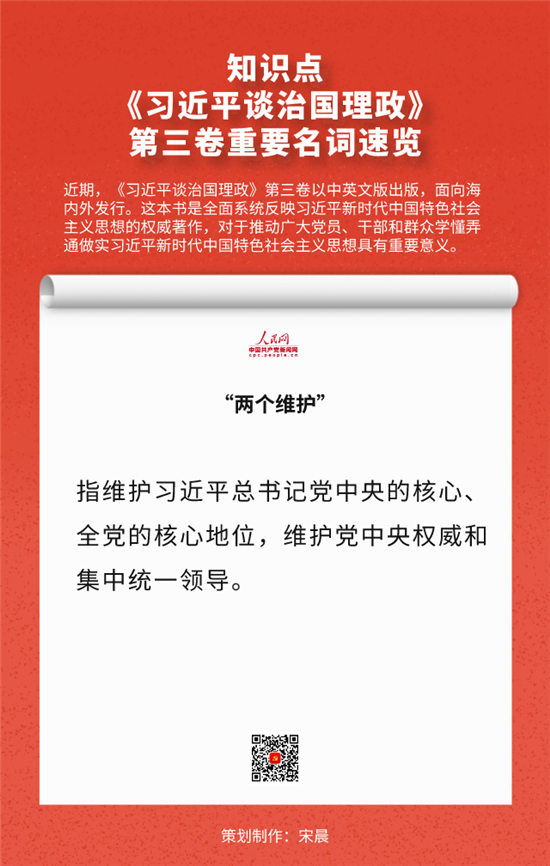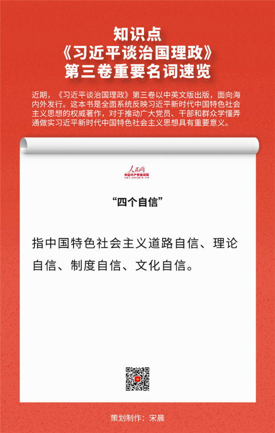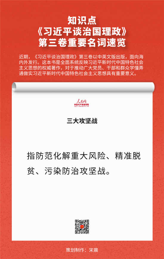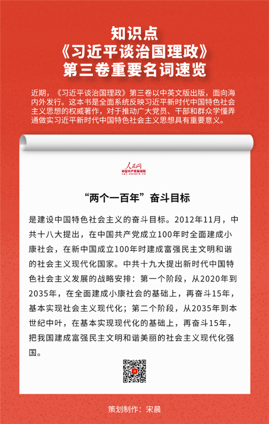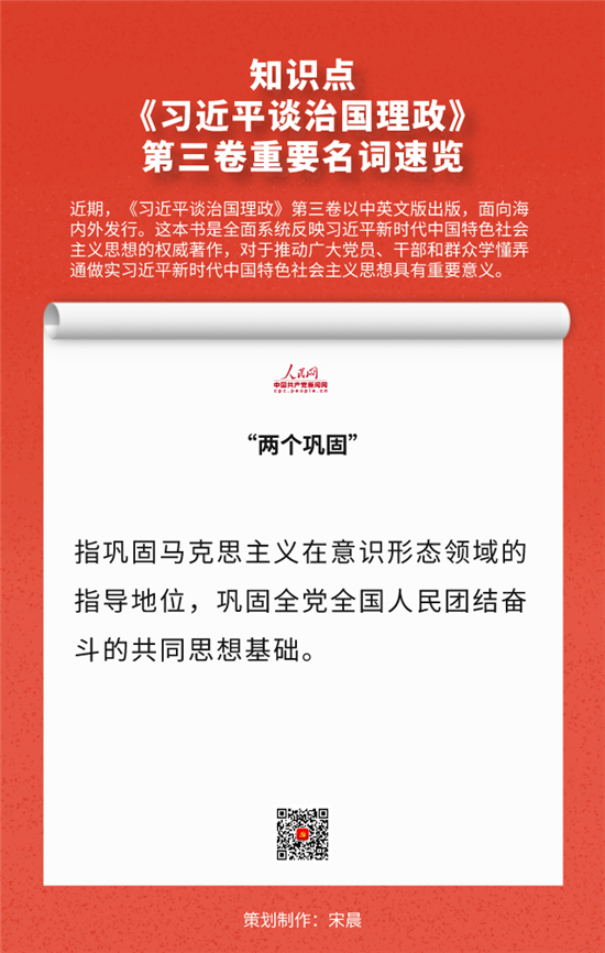编者按:近期,《习近平谈治国理政》第三卷以中英文版出版,面向海内外发行。这本书是全面系统反映习近平新时代中国特色社会主义思想的权威著作,对于推动广大党员、干部和群众学懂弄通做实习近平新时代中国特色社会主义思想具有重要意义。人民网·中国共产党新闻网针对书中的一系列重要名词制作推出系列海报,便于大家更好地学习领会。