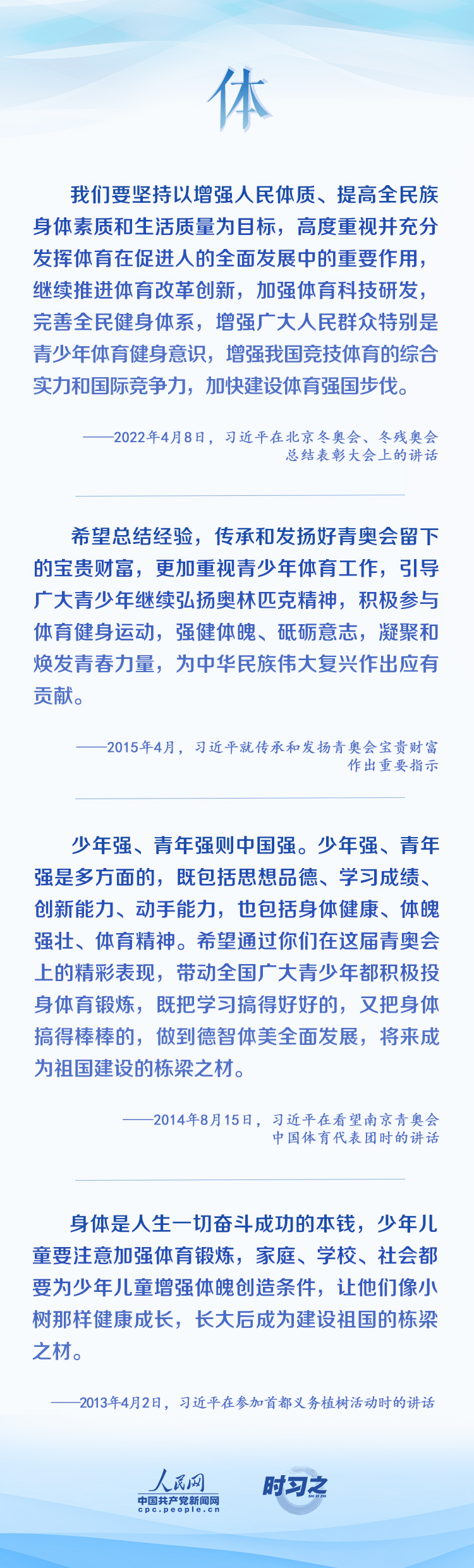 当代中国青年生逢盛世、肩负重任,与新时代同向同行、共同前进。在青春的赛道上奋力奔跑,争取跑出当代青年的最好成绩,习近平激励青年要德智体美劳全面发展。