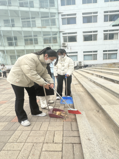 活动中,志愿者们充分发挥不怕累、不怕脏的实干精神,对行健楼门前的烟头、枯叶等进行彻底清理,大家相互配合,分工明确,齐心协力,使校园环境焕然一新。
