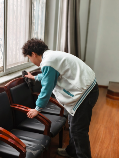 同时志愿者们一打扫行健楼C105考研自习室整理书桌收拾杂物,共创出一个干净、美好学习环境,为考研学子的升学梦保驾护航,青春的色彩在志愿服务中悄然绽放。