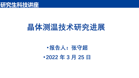 张守超为员工带来了《晶体测温技术研究进展》学术报告,详细介绍了晶体缺陷产生、应用以及利用缺陷高温回复规律开发晶体温度传感器,讲述了课题组在技术攻关、工程应用等方面的工作进展,展示了该技术在解决极端复杂环境中温度测试的独特优势。