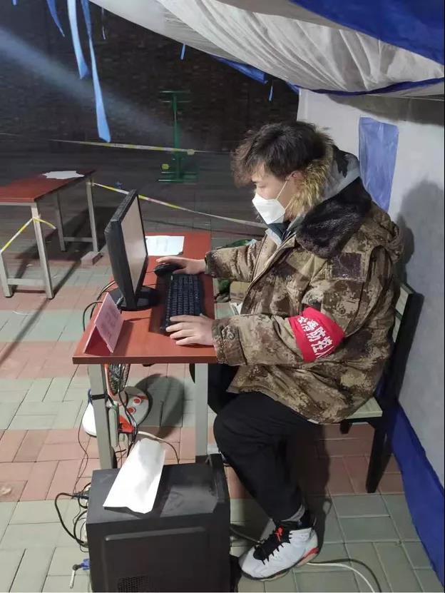 李雪菲,2019级应用物理学1班员工。她参加了蓟州区出头岭镇南河居委会的防疫志愿活动,负责在防疫现场为居民登记信息,维护秩序。